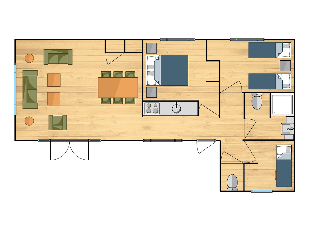 Na een dag vol avontuur in het attractiepark kom je samen thuis in de Missouri Lodge. Hier beleef je een vakantie vol gemak en ontspanning. De moderne keuken is volledig uitgerust en perfect voor het bereiden van een gezellige maaltijd. De open indeling creëert een warme sfeer, ideaal om tijd door te brengen met vrienden of familie.