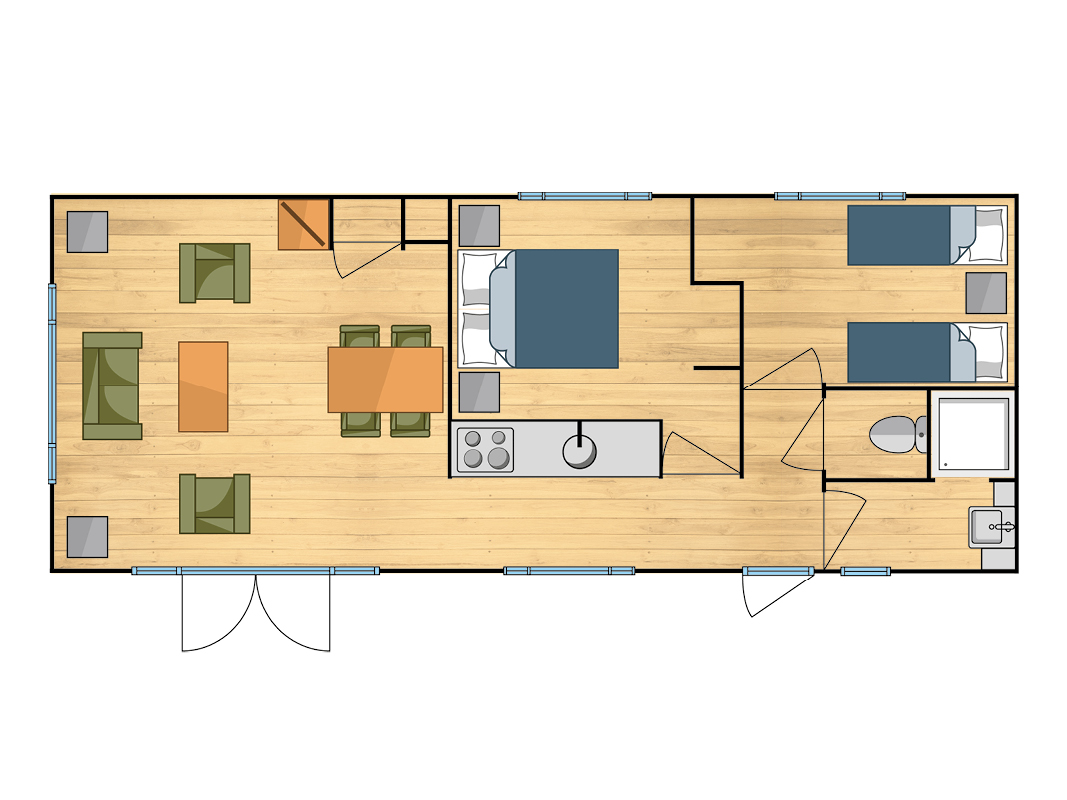 Het sfeervolle interieur is van alle gemakken voorzien, zodat je je snel thuis voelt. Na een dag vol avontuur in het nabijgelegen attractiepark kun je ontspannen en genieten van de serene omgeving. In de Yellowstone lodges vind je de perfecte balans tussen avontuur en ontspanning, een ideale uitvalsbasis voor een onvergetelijke vakantie!