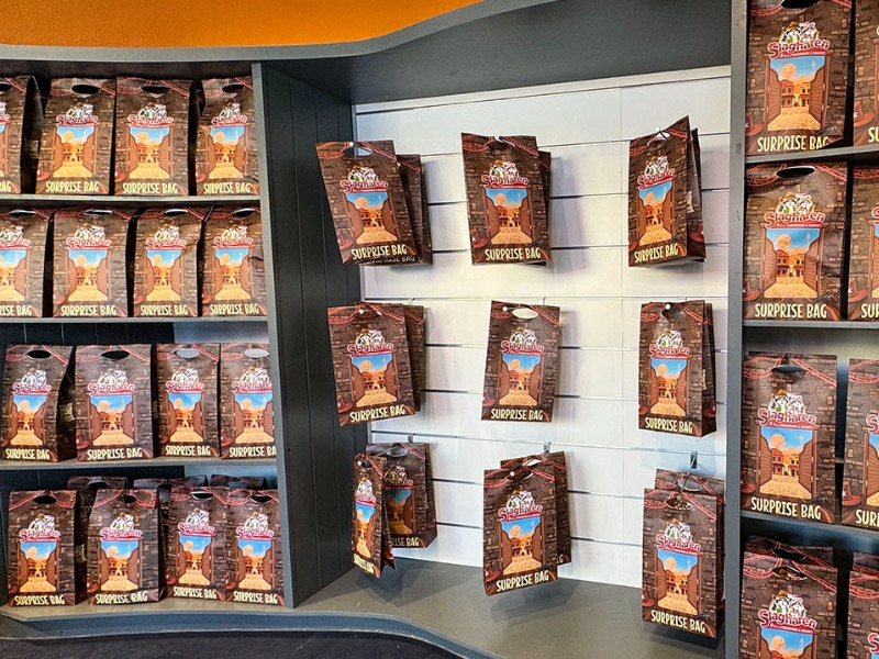 In Sam’s Surprise Store aan de Main Street vind je een unieke selectie van verrassingen voor jong en oud. De winkel biedt de Red Bandits Surprise Bags, speciaal samengestelde pakketten die voor een leuke verrassing zorgen. Wat erin zit? Dat blijft een geheim, zodat je altijd een beetje avontuur meeneemt naar huis.