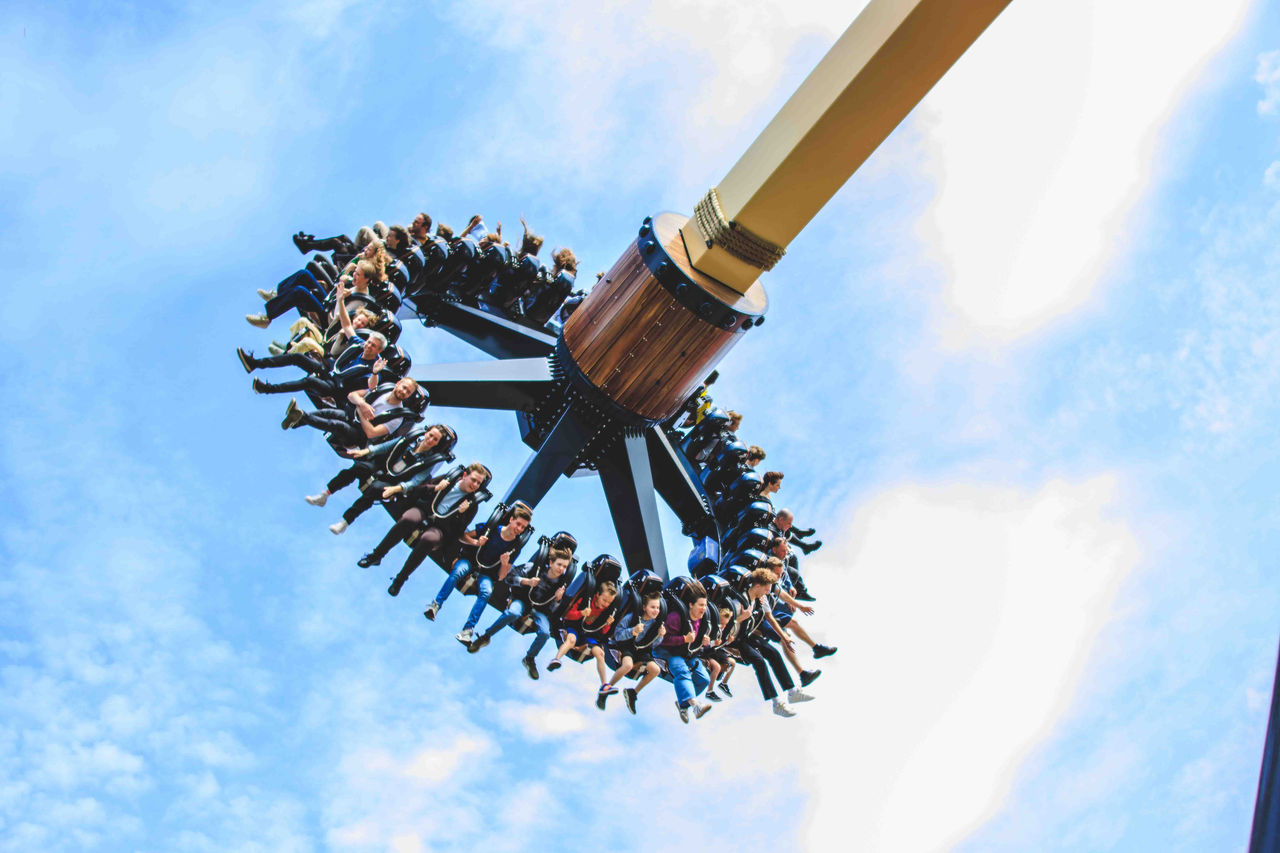 Je stijgt tot een hoogte van maar liefst 30 meter! Vanaf daar heb je een waanzinnig uitzicht over het hele park. Op de kop dan...