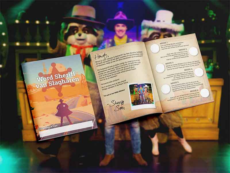 Word ook sheriff van Slagharen. Voltooi 4 missies en je krijgt een echte sheriff badge waarmee jij een nieuwe hulpsheriff van Slagharen bent. Wil je ook meedoen? Haal dan je boekje met missies op bij de Guest Service in het park. Heb je minimaal 4 missies voltooid dan kun je een sheriff badge ophalen in de Main Store.