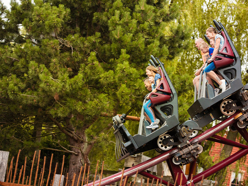 Du möchtest das Abenteuer des Wilden Westens erleben? In der Achterbahn Gold Rush sitzt du mit vier Personen in einer Reihe und erlebst einen gemeinsamen Adrenalinrausch auf der aufregenden Fahrt über Höhen und Tiefen. Es handelt sich um eine Triple-Launch-Achterbahn, das bedeutet, dass sich der Wagen dreimal beschleunigt: zweimal vorwärts und einmal rückwärts. Das muss man erlebt haben! Du fährst zweimal kopfüber und das mit einer Geschwindigkeit von 95 km pro Stunde! Ein unvergessliches Abenteuer!