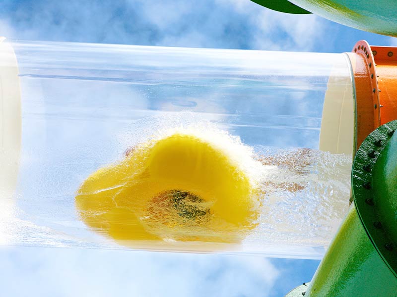 Leuchtende Farben und Ausblicke auf den Park dank einer transparenten Röhre! Auf dieser Rutsche kannst du zwischen acht verschiedenen Lichtshows wählen. Schnapp dir einen Reifen, mach dich bereit und genieße die Fahrt. Hinterher kannst du deine Zeit auf der Yukatime sehen und versuchen, die Bestzeit zu schlagen. Wen wirst du dabei herausfordern?
