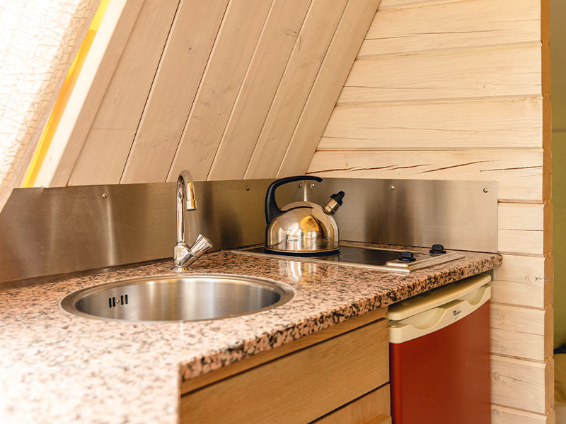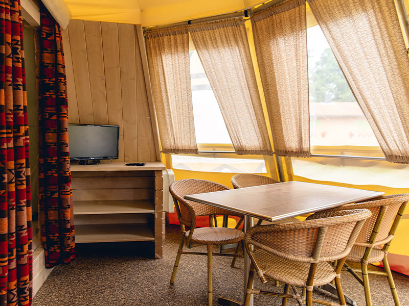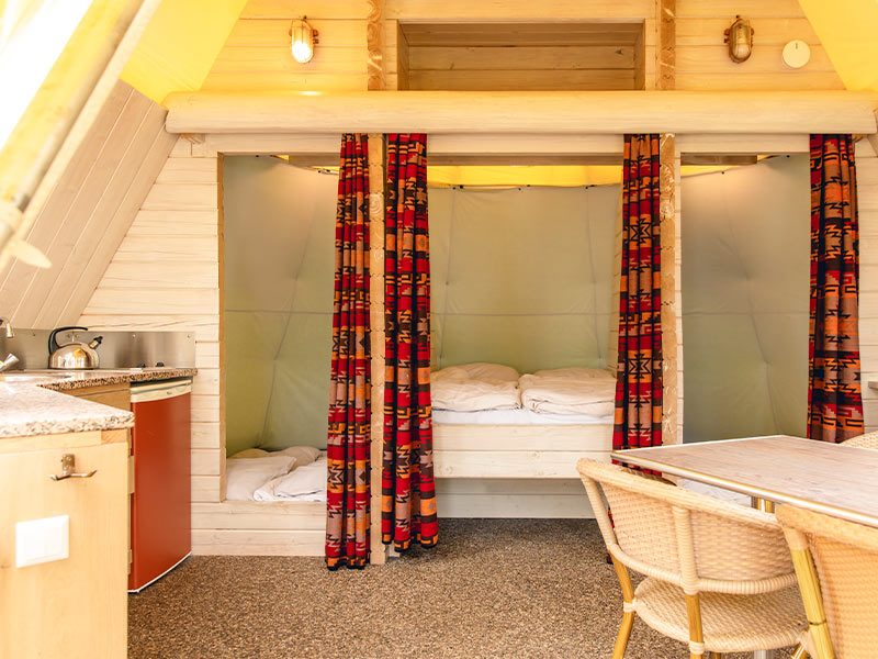 Das Wigwam Deluxe liegt in unmittelbarer Nähe zum Freizeitpark, sodass du im Handumdrehen von Abenteuer zu Entspannung wechseln kannst. Bei einem Aufenthalt im Wigwam Deluxe erlebst du das Gefühl, wie ein echter Indianer auf der abenteuerlichen Prärie zu schlafen! Jedes Wigwam verfügt über eine voll ausgestattete Küche, in der du leckere Gerichte selbst zubereiten kannst. Die gemütliche Einrichtung sorgt dafür, dass du dich schnell wie zuhause fühlst, und das private Badezimmer im Zelt bietet den nötigen Komfort. Die moderne Ausstattung eines vollständig eingerichteten Bungalow-Zelts ermöglicht es dir, das Draußensein zu genießen, ohne auf Komfort zu verzichten. Zieh deine Cowboy-Stiefel an und erlebe ein unvergessliches Abenteuer im Wigwam Deluxe!
