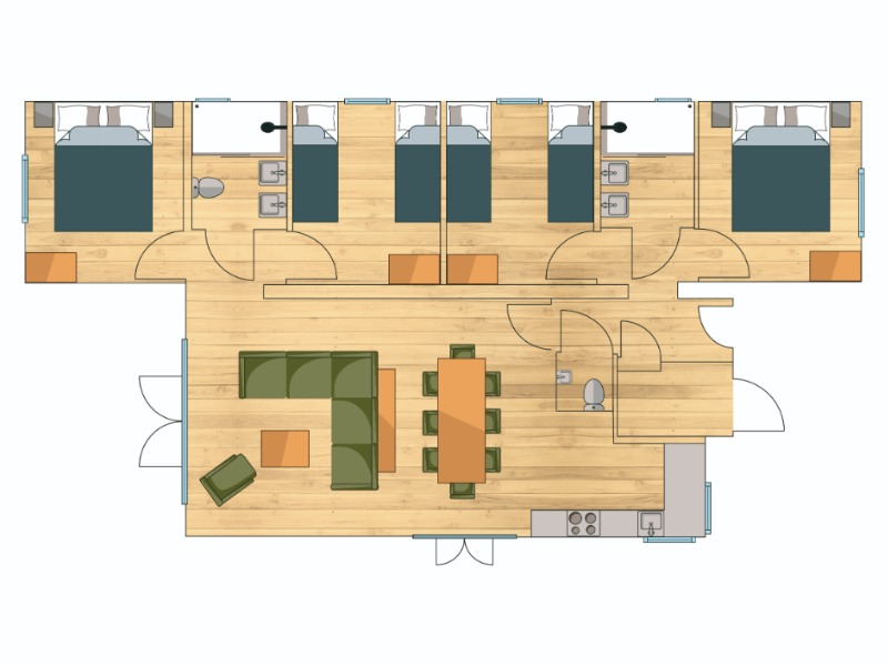 Our accommodation is not only very spacious but also extremely comfortable. With underfloor heating, your feet stay warm as you move around the kitchen. Additionally, the accommodation is entirely gas-free and environmentally friendly, contributing to a sustainable stay.