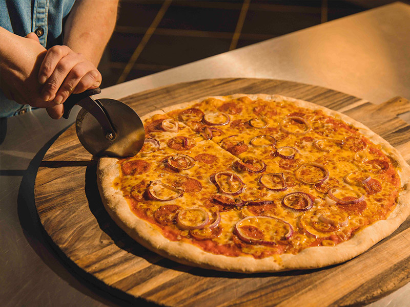 Pizza time! Order a delicious pizza or fresh pasta at the Italian restaurant Randy’s Pizza & Pasta.